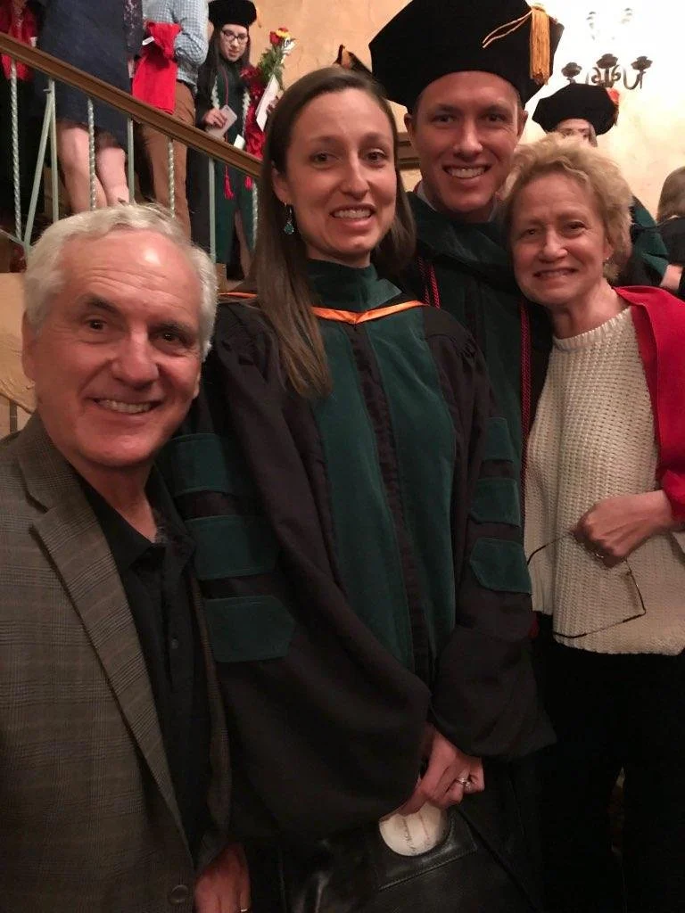 Commencement 2018 with his father, former Sen. Eliot Shapleigh; Zoe Tullius, M.D.; and mother Lee Shapleigh.